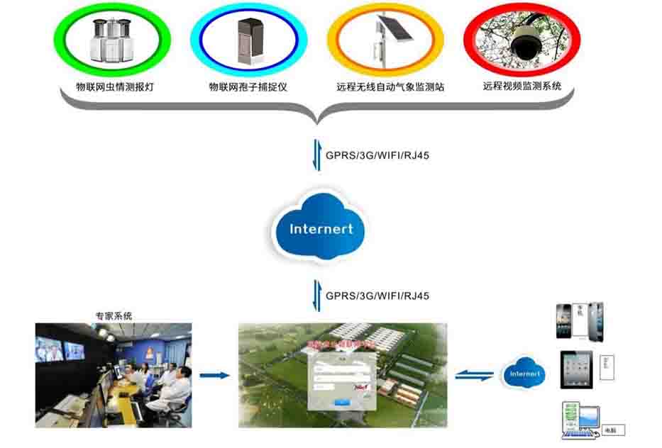系統(tǒng)可自動(dòng)完成蟲情信息、病菌孢子、氣象信息的圖像及數(shù)據(jù)采集,通過遠(yuǎn)程無(wú)線傳輸,自動(dòng)上傳至云服務(wù)器,實(shí)時(shí)存儲(chǔ)及顯示蟲情、病菌孢子圖像,并通過圖像信息庫(kù)及技術(shù)分析功能,分析病蟲害數(shù)量變化,預(yù)測(cè)病蟲害的發(fā)生時(shí)間和趨勢(shì)。用戶可通過云平臺(tái)或手機(jī)APP實(shí)時(shí)查看數(shù)據(jù),遠(yuǎn)程管理設(shè)備。達(dá)到自治區(qū)、州、縣、鄉(xiāng)各級(jí)信息采集站無(wú)線傳輸、遠(yuǎn)程控制,信息數(shù)據(jù)共享,從而提高相關(guān)部門的病蟲害監(jiān)測(cè)防控能力。