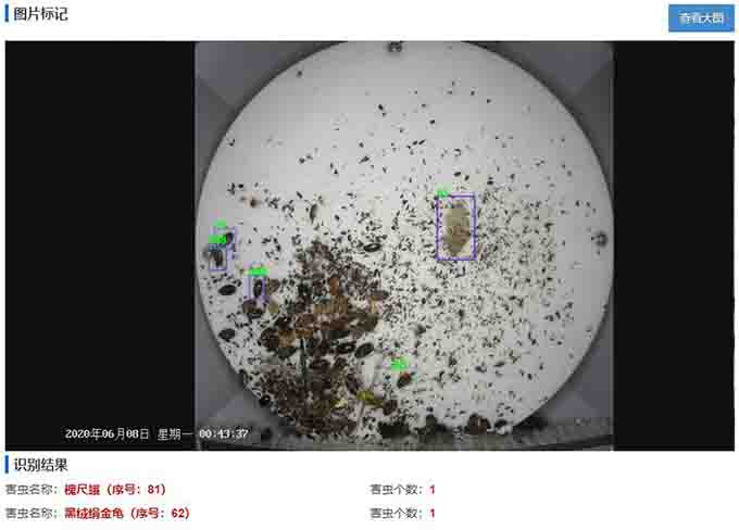 病蟲害監(jiān)測(cè)預(yù)警系統(tǒng)通過云端的人工智能引擎可對(duì)害蟲蟲體進(jìn)行自動(dòng)標(biāo)記和識(shí)別,對(duì)害蟲進(jìn)行分類計(jì)數(shù)。通過利用人工智能技術(shù),系統(tǒng)可識(shí)別柳藍(lán)葉甲、褸裳夜蛾、灰胸突鰓金龜、金星尺蛾、美苔蛾等害蟲,識(shí)別種類多達(dá)100多種,識(shí)別準(zhǔn)確率高于85%,大幅提升識(shí)別率。通過遠(yuǎn)程監(jiān)測(cè),用戶可以在線準(zhǔn)確掌握林業(yè)病蟲害發(fā)生情況,針對(duì)具體蟲害類型采取防治措施。